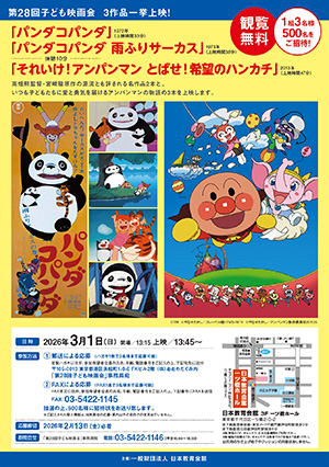 映画「パンダコパンダ」「パンダコパンダ 雨ふりサーカス」「それいけ!アンパンマン とばせ!希望のハンカチ」特別上映会
